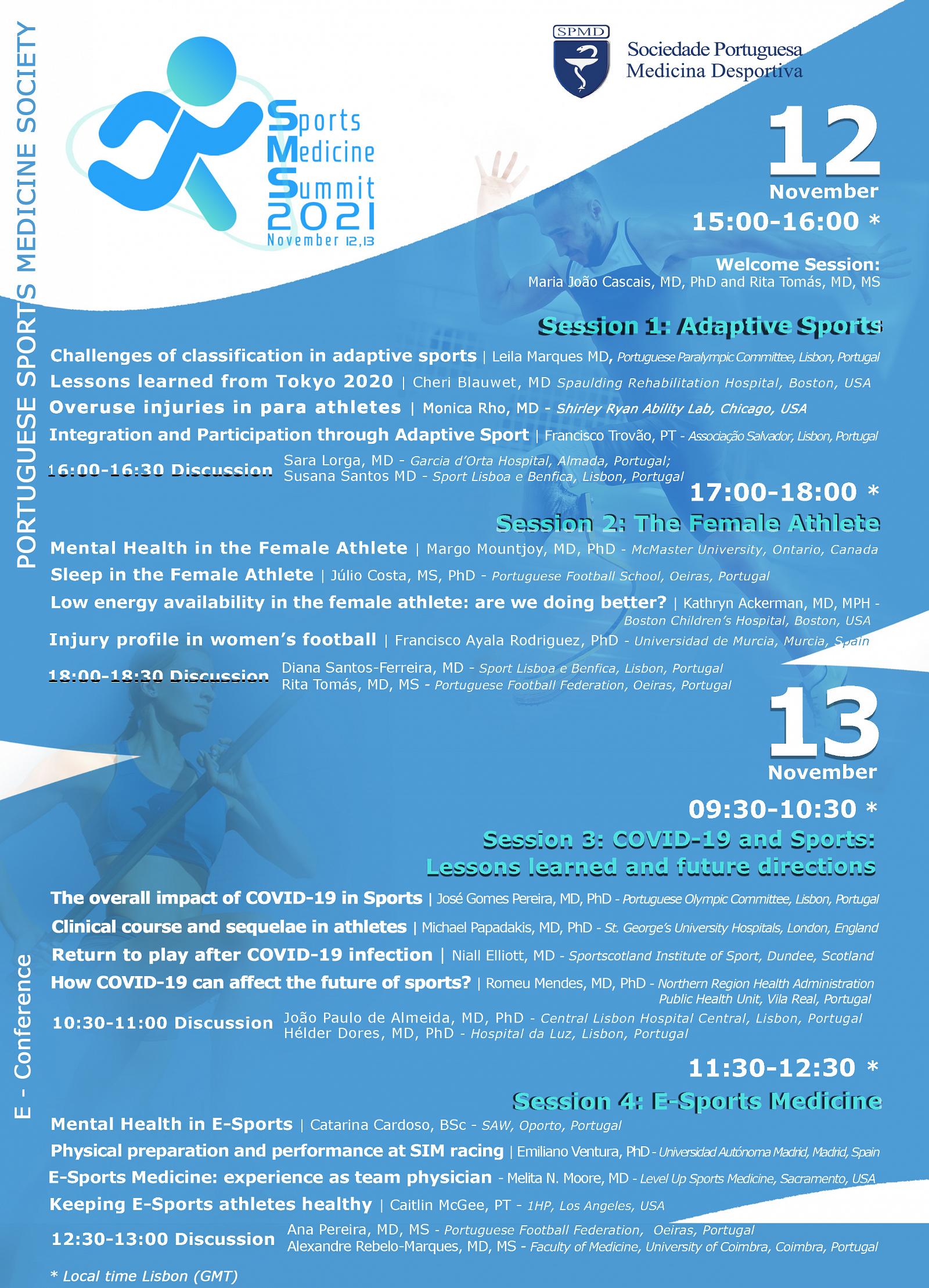The Portuguese Society of Sports Medicine will hold the Sports Medicine Summit "SMS 2021", an entirely online event in English, on the 12th and 13th November.